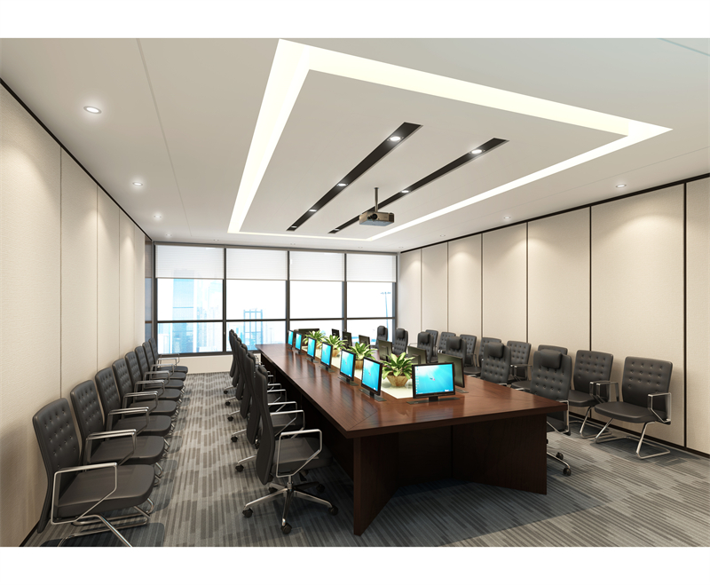布局設計:根據房間的尺寸和形狀,設計合適的家具布局。U型、長方形或圓形布局可根據會議的類型進行不同設置。
