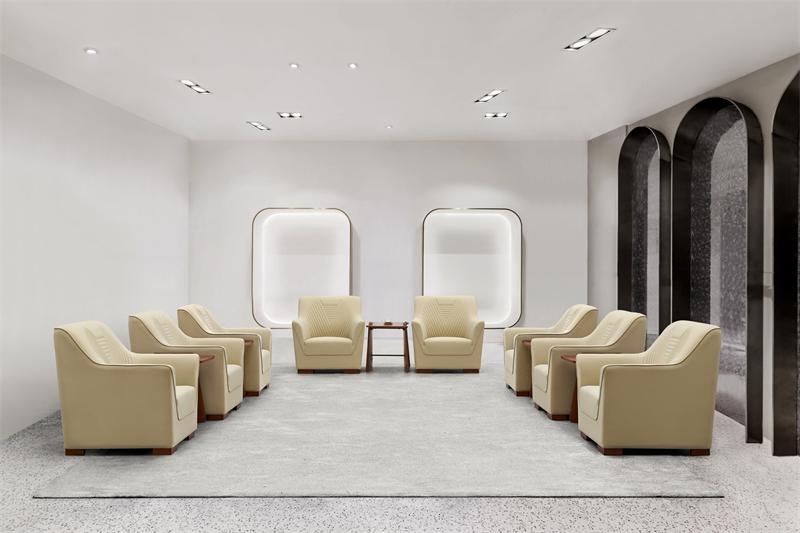在選擇接待沙發前,首先要明確接待區的空間大小和布局。根據空間的尺寸確定沙發的大小和數量。在較大的接待區,L型或U型的沙發可以充分利用空間,為訪客提供更多座位和更舒適的體驗。而在較小的接待區,可能需要選擇較為緊湊的沙發設計,確保不會顯得擁擠或阻礙通行。此外,考慮到空間的流通性,沙發的位置應便于訪客的進出和在接待區的活動。